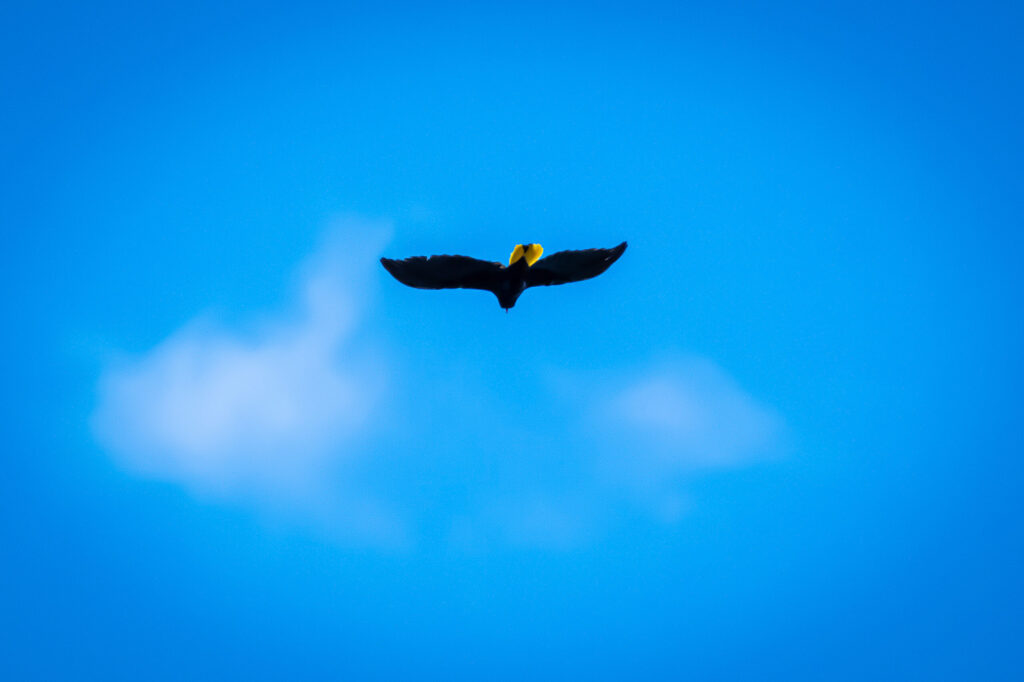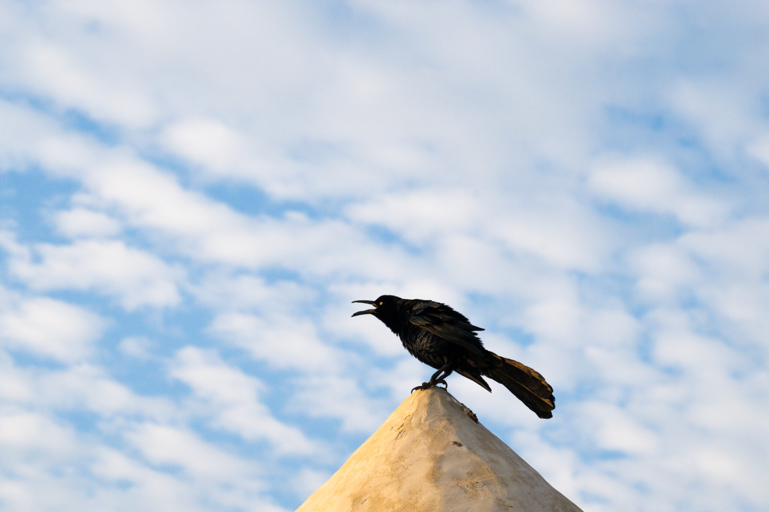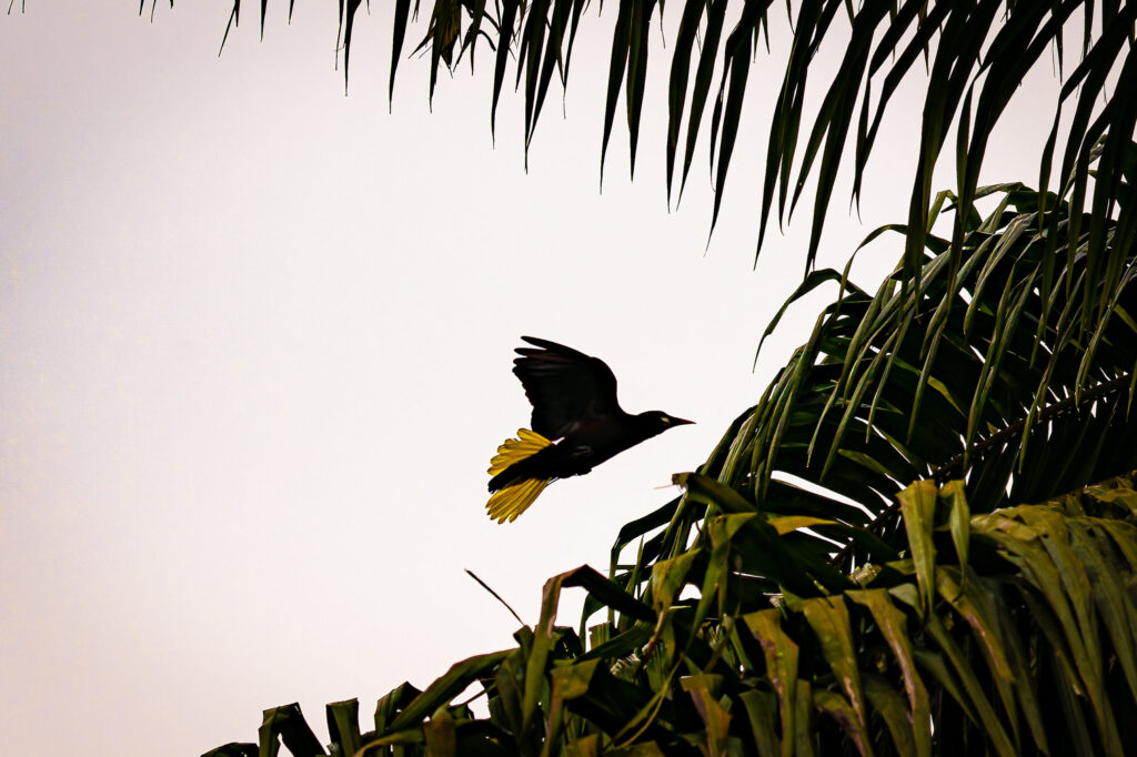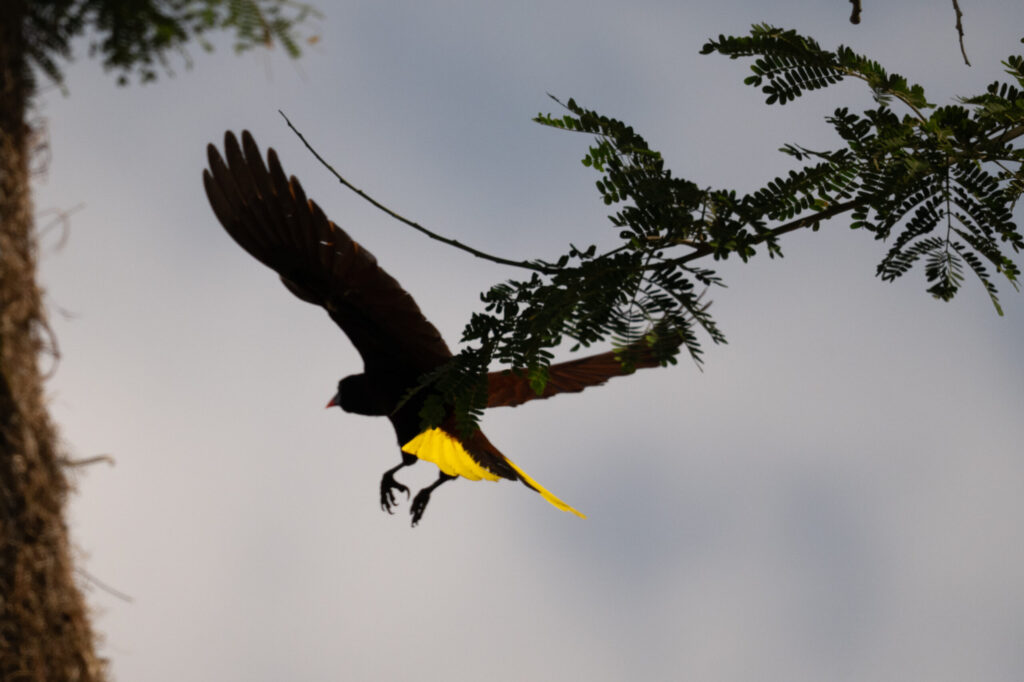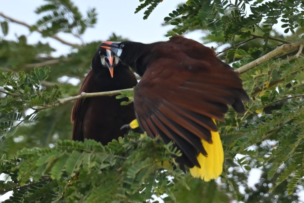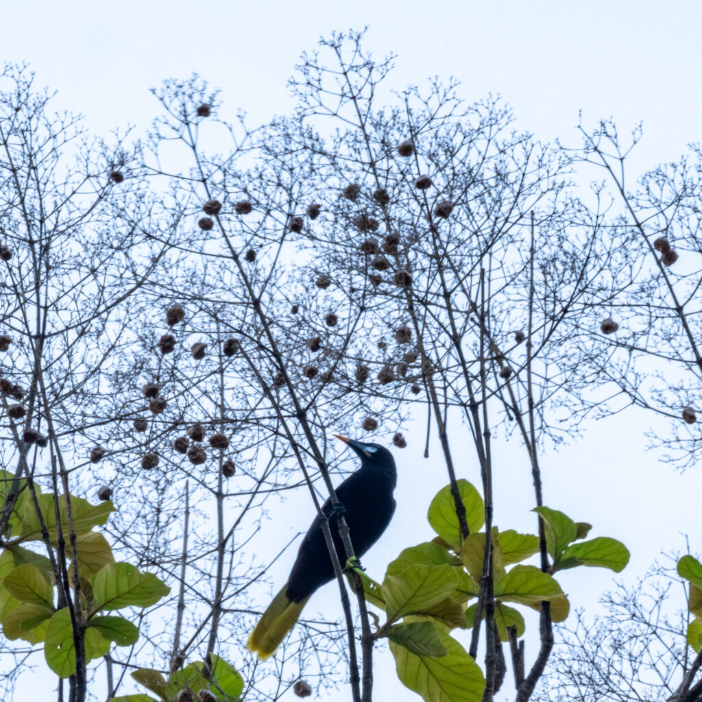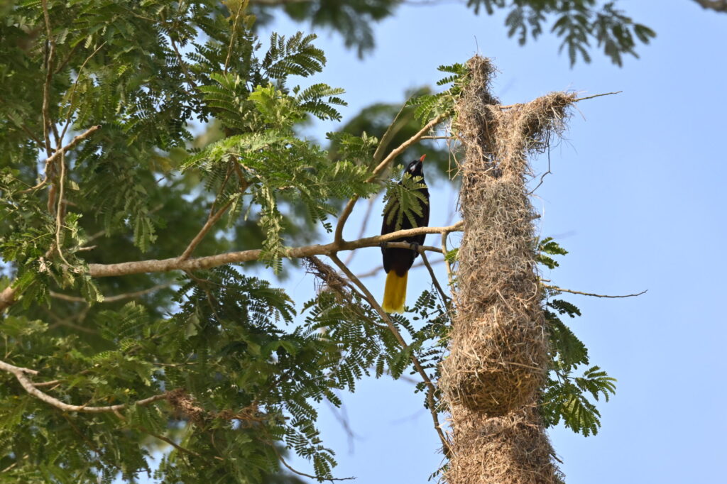 遺跡、そして神々しいまでの輝き。まさに、Montezuma Oropendolaという名がぴったり。なお、せっかくこの鳥を観察したり、写真を撮ったりするのであれば、ぜひ、晴れ渡った日の太陽が高く上がっている時間帯がお勧め。