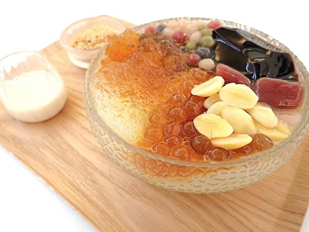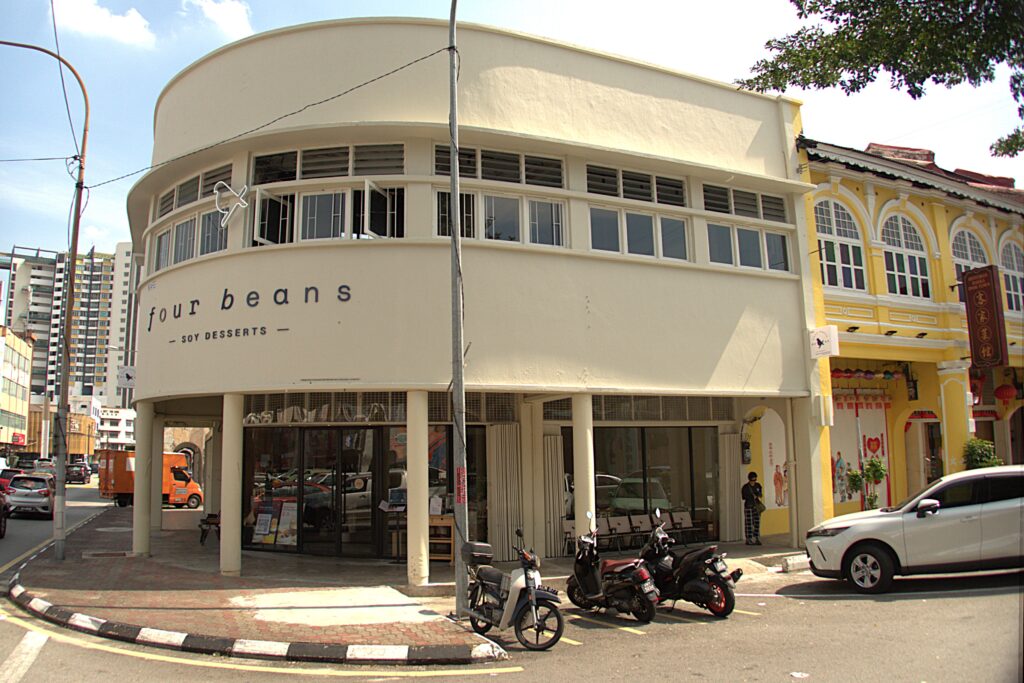 しかしながら、ぶらぶらと歩いているうちに、庶民的様相のレストランが立ち並ぶ地区の中で異彩を放つなにやらおしゃれな建物を発見。「four beans soy restaurant」との店名が、まさに豆腐色のシックな壁面に書かれている。ふらふらと引き寄せられてみると、入り口前には「best desert in the world」的なことも書かれており(記憶あやふや)、「そういえばイポーは豆腐花のデザート豆腐花が有名だった」との記憶が蘇り、一に二も無く入店。メニューにあったのは、伝統的な豆腐花とはひと味異なる、ピスタチオなどのさまざまなナッツや豆類をカラフルに組み合わせた豆腐花。豆乳でつくった(?)雪の花のようなふんわりとしたかき氷たち、そして「Dancing Cat」と名付けられた猫型のプリン(ぷるぷるする)などが並ぶ。そこに書かれた「low calorie」との文字が、免罪符のように目に飛び込み、ついさっきハイカロリーの食事をしたばかりであることを頭の片隅に追いやり、二品を注文。十分に冷えたかき氷もものともせずに、これまたあっという間に食べ終えてしまいました。さらにこの後、別の店でイポー発祥のホワイトコーヒーも飲みました。。)