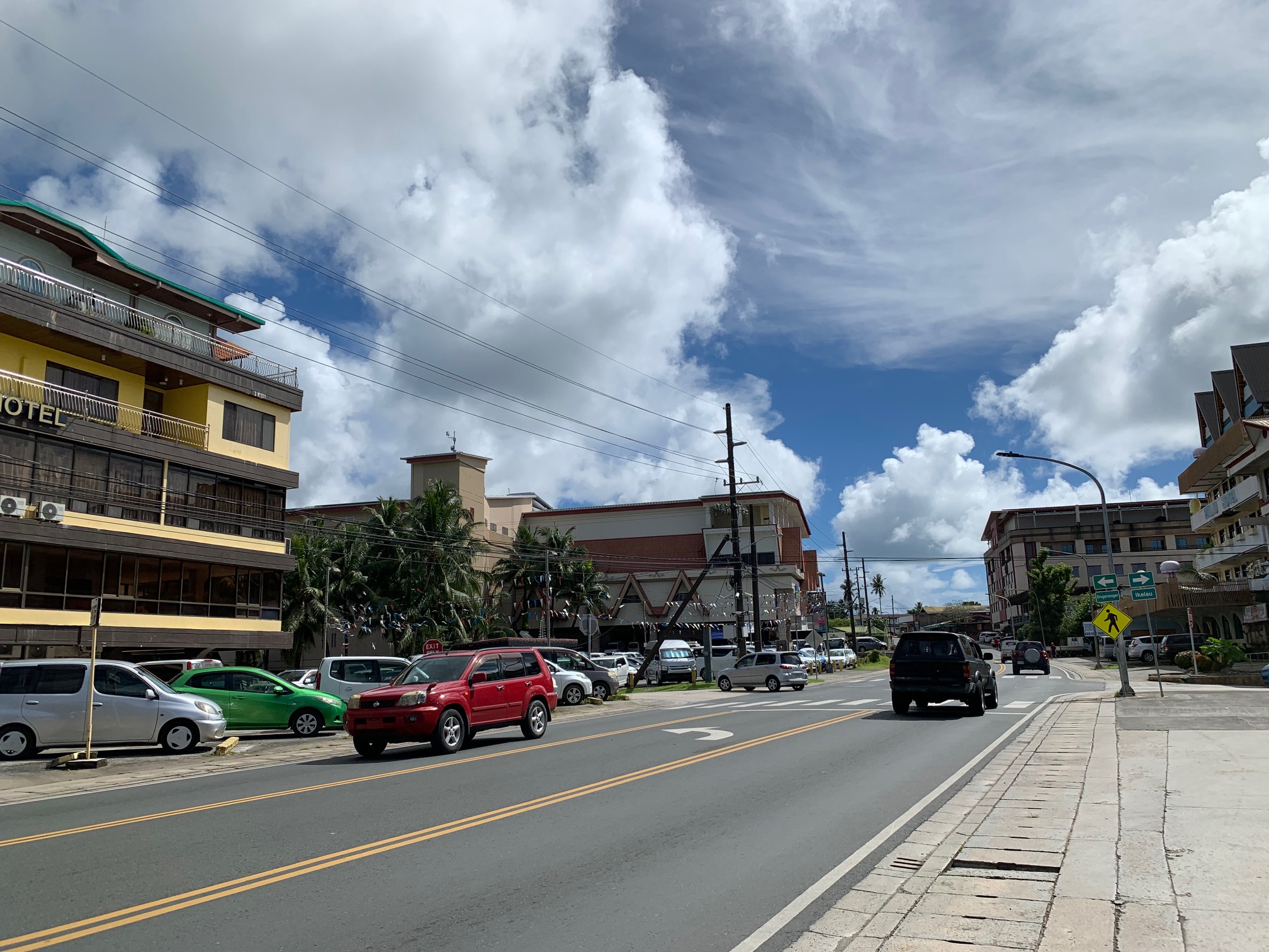 人口のほとんどが集中しているコロール島をはじめ、港があるマラカル島、日本大使館があるアラカベサン島も、基本的にはメインストリートが一本あるのみ。首都や空港があるバベルダオブ島も、米国の支援で作られたコンパクトロード(米国とパラオとの「自由連合協定(通称:コンパクト)に基づいて舗装された」が島内をぐるっと周回しています。なお、パラオは自動車は右側通行です。