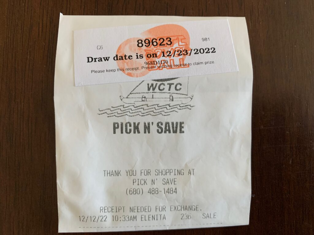 この抽選システムのすごいところは、かなりの頻度で当たりが出ること(といっても、よく当たるのは5ドルですが。。)。我が家では5ドルは年に何回かは当たっています(そんなに買い物しているわけではないですよ。。)そして、なんと4桁一致で、100ドルを当てたこともあります!(ただし、1回だけです)。