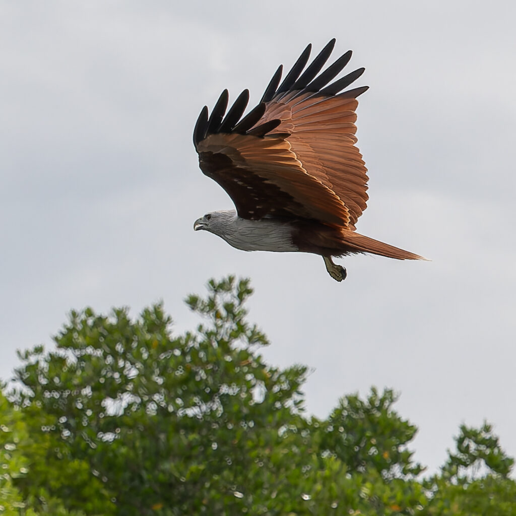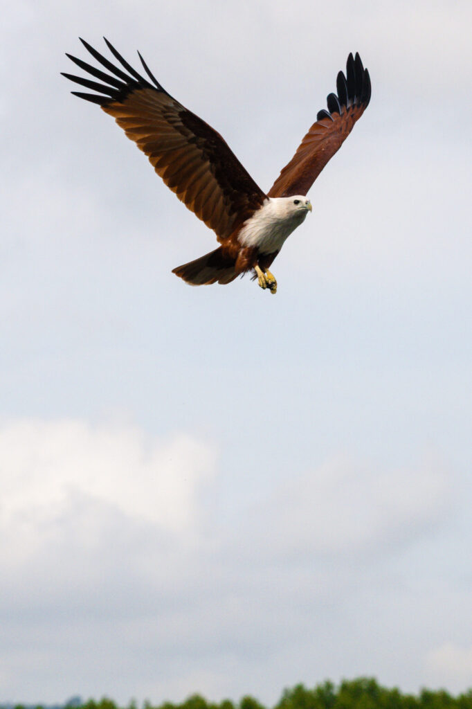 イーグルウォッチでは、2種類の鷲を見ることができます。地元の言葉で「ランカウイ」とは赤褐色の鷲を意味すると言われており、その鷲であるシロガシラトビ(英語ではBrahminy KiteまたはRed-Backed Sea-Eagle)と、さらに大型のシロハラウミワシ(White Bellied Sea Eagle)。